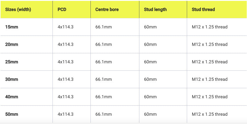 The wheel spacers are hub centric to suit Nissans 66.1mm hub and are manufactured to the highest quality in T6061 Aluminium and then hard anodized to further increase the strength along with grade 10.9 studs, which you have the option of either standard length studs or extended wheel studs.