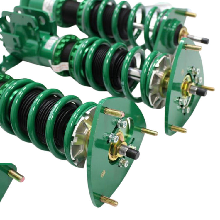 Tein need no introduction, they are some of the best quality coilovers in the market. The Flex Z range are priced incredibly well for what you get. Full Adjustable shocks with top hats and camber adjustment when available for the vehicle model. If you are looking to lower your vehicle, set it up for racing, have a firming ride, better handling, more stability while driving why settle for regular lowering springs when you can easily get these Tein FlexZ coilovers which do a whole heap more than just make YOUR vehicle look good! Replaces your factory shocks and springs with this complete set of 4 Tein Coilovers