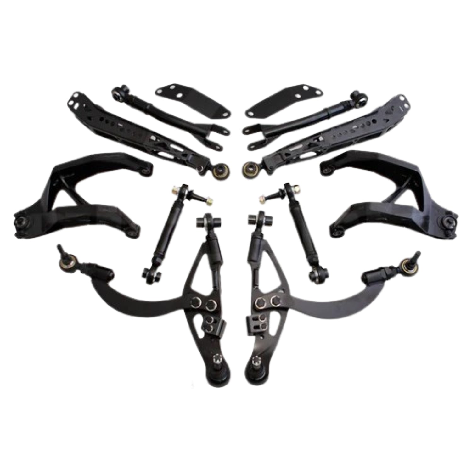 This listing is for the 5 main adjustable arms being the front lower control arms, rear lower control arms, rear upper camber arms, toe and traction arms.