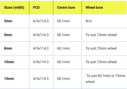 NOTE#3: Sizes 5mm+ Must be used with extended wheel studs