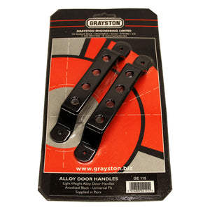 Lightweight aluminium alloy door handles from Grayston Engineering. Save yourself the trouble of making them yourself, supplied as a pair, finished anodised in black.