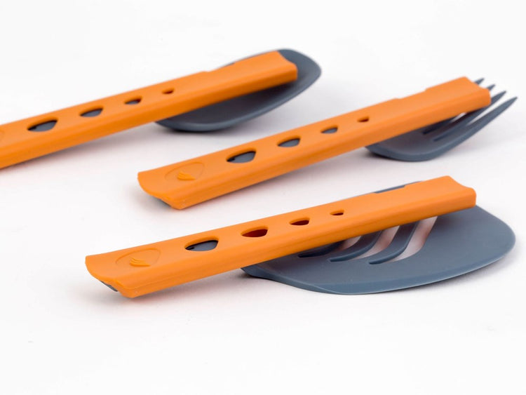 The Jetboil Jetset Utensil Set gives you everything you need to cook and eat on the go — without weighing down your pack. Made from heat-resistant nylon, these utensils are designed to stir, scoop, and flip straight from your Jetboil stove without melting or warping.