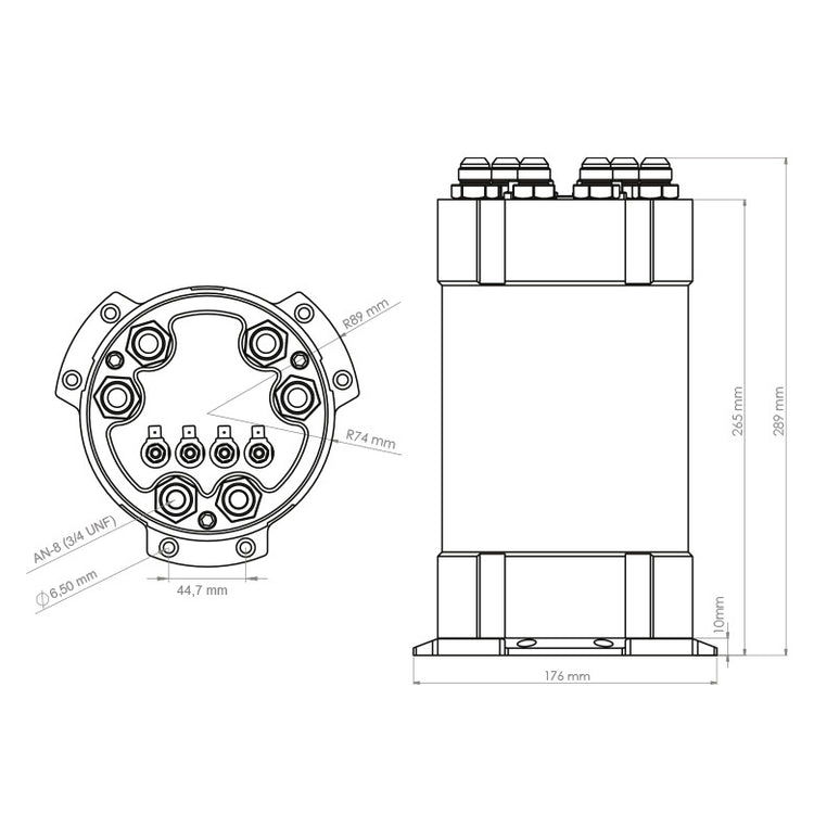 Delivered with a billet aluminum mounting bracket for effortless mounting and 6 x AN-8 (3/4 UNF) to AN-8 Male fittings and 2 x AN-8 (3/4 UNF) Plugs to use when running 1 or 2 fuel pumps and want to block the left-over outlets. Other sized fittings are sold separately as accessories.