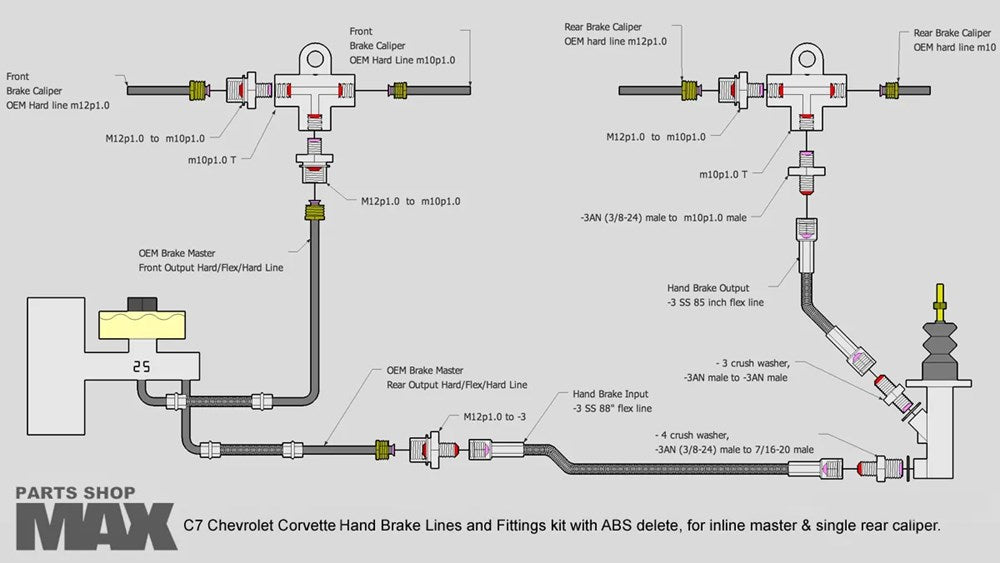 This kit will plumb our in-line handbrake to your C6 or C7 Corvette. Includes ABS bypass.