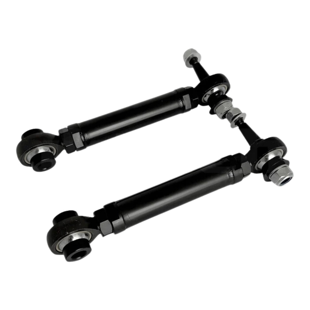 The lengths on these rear toe arms are fully adjustable to your specs when doing an alignment and with the right adjustments, straight line and cornering of your vehicle will be improved.