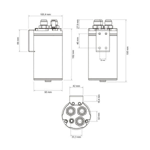 Drainage is made easy with the optional peacock valve that connects to the 1/4 drainage thread at the bottom. It comes with a 1/4" peacock valve that fits straight into the bottom of the catch can. Route the included 2 m / 6 ft hose to an easy-access location, for example, the wheelhouse. It makes it easy to drain/collect the residual products without having to disassemble the Catch Can from the vehicle.