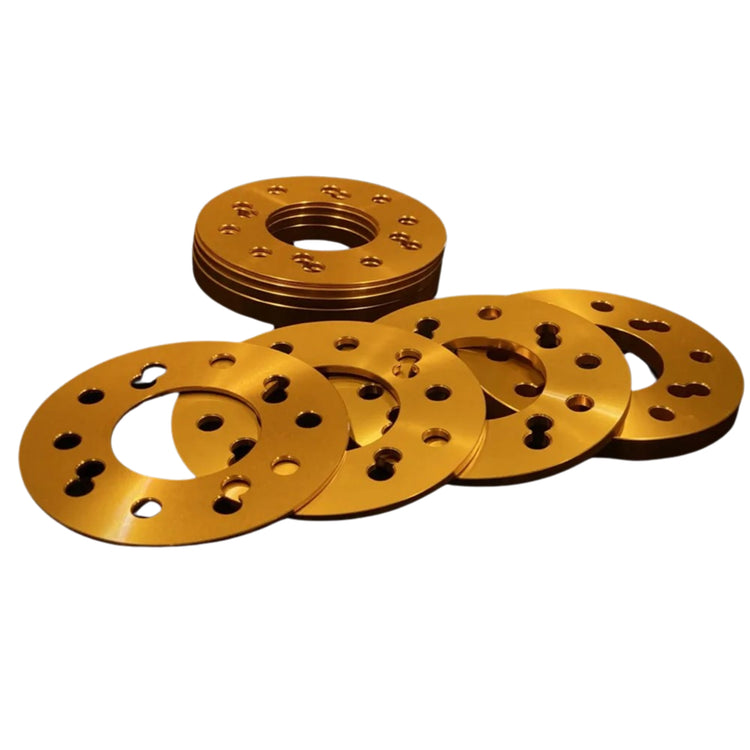 Has 4 and 5 hole pattern 120mm PCD. These also have a third hole pattern, allowing the spacers to be used with 5x114.3 PCD conversion custom hubs sold elsewhere. When these spacers are stacked beyond the hub center bore, they are no longer hub centric.