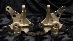 These knuckles start out as a strong forged steel blank and are then CNC machined for excellent fit and finish and perfect symmetry. These knuckles are a part of our full angle kit (FLCA, extended tie rods, top camber plates, sold separately) allowing 63 degrees of usable steering angle and optimized geometry.
