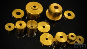 This CNC lathed, Anodised aluminum parts set was designed with consideration of the variation that exists when we 3D laser scanned and probed in multiple chassis and subframes, for optimised fitment and ease of installation considering OEM chassis and sub-frame manufacturing tolerances.