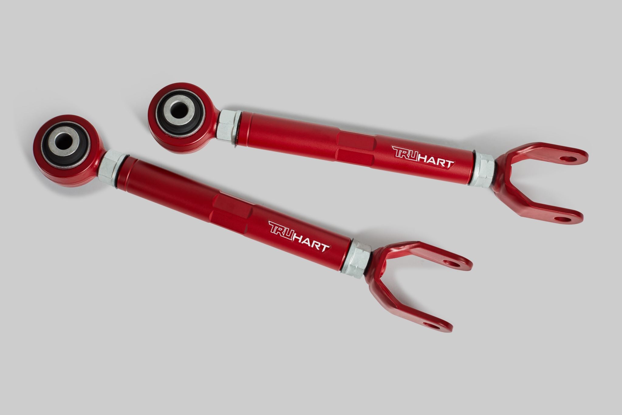 TruHart rear camber arms replace your factory arm with a strengthened adjustable arm. Our camber kits utilize hardened rubber bushings which allows for less deflection and provides a more direct feel road feel than OE bushings.